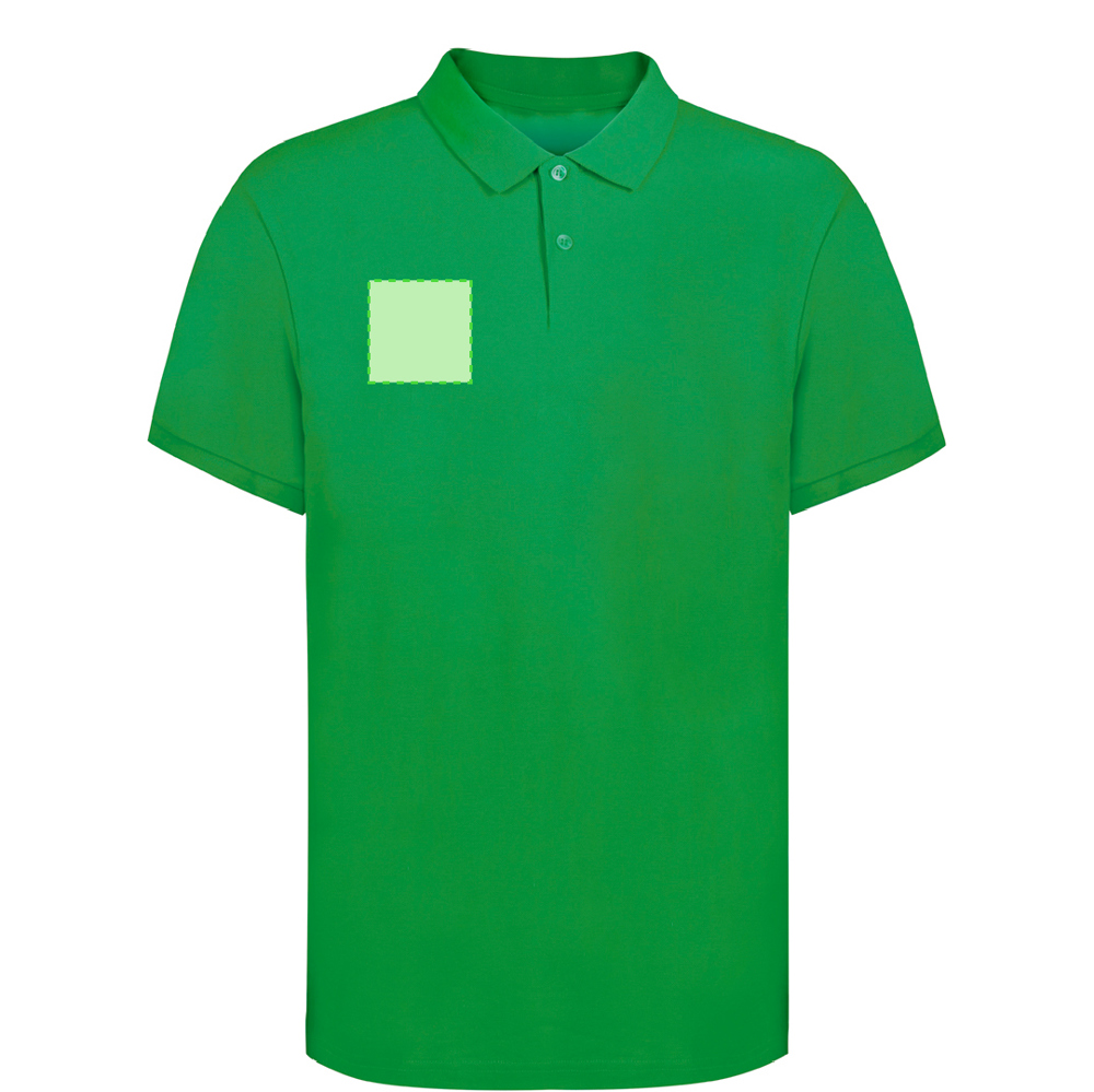Adult short sleeve polo shirt, made of 100% combed cotton pique Ring Spun, 220g/m2. Soft feel and modern cut, with side openings at the hem and available in a wide range of colours. Two-button placket, with double-stitched hem and sleeves for extra durability and resistance to intensive use. Easily removable label. Available in sizes S, M, L, XL, XXL and 3XL.