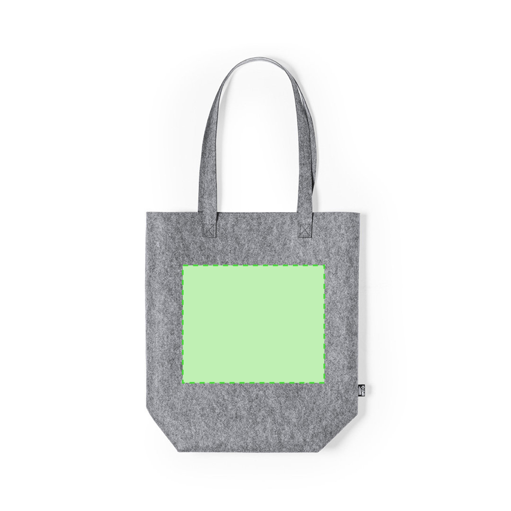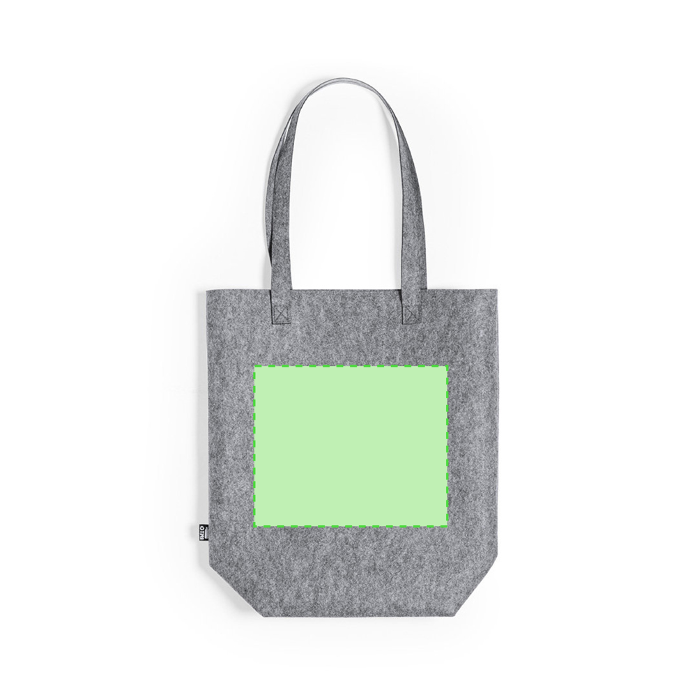 Nature line bag in resistant, recycled RPET felt. The result of the combination of the recycling processes of plastic materials along with the millenary technique of felt manufacturing, resulting in an eco-trend material that, in addition to being of recycled origin, also becomes recyclable. Rectangular design, with gusset at the base, extra long and extra wide reinforced handles (70 x 3.5 cm). Resistance up to 6kg, with RPET emblem on outside label.