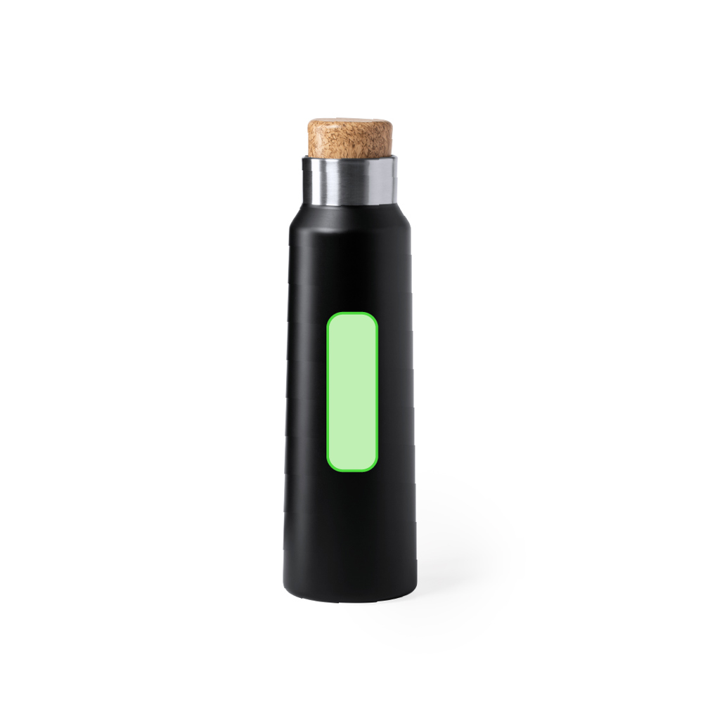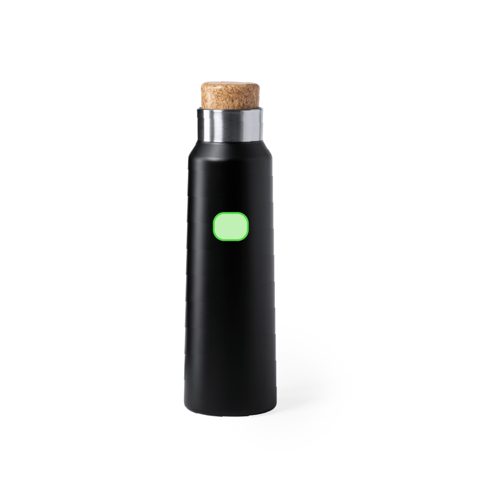 Nature line inspired, high quality and high capacity bottle -770ml-. In stainless steel material an including a design lid inspired in natural cork. Available in elegant white and black colors and presented in an attractive eco design box. Instruction manual available in Spanish and English.