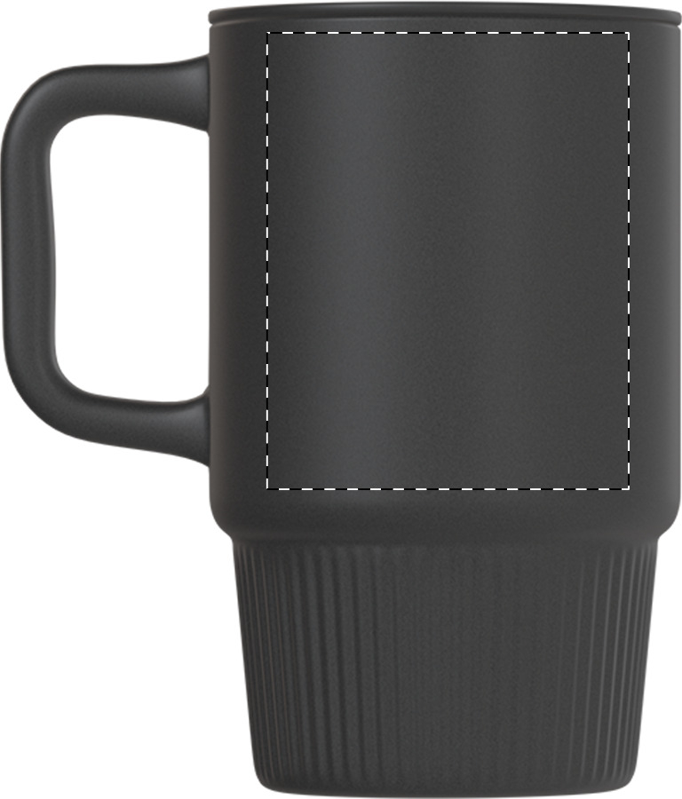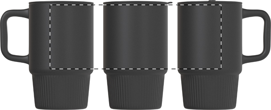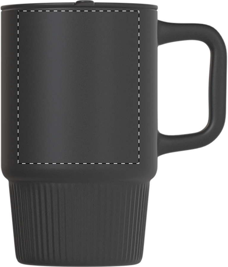 High quality ceramic travel mug with matte outside finish and PP plastic drinking lid. 420 ml.