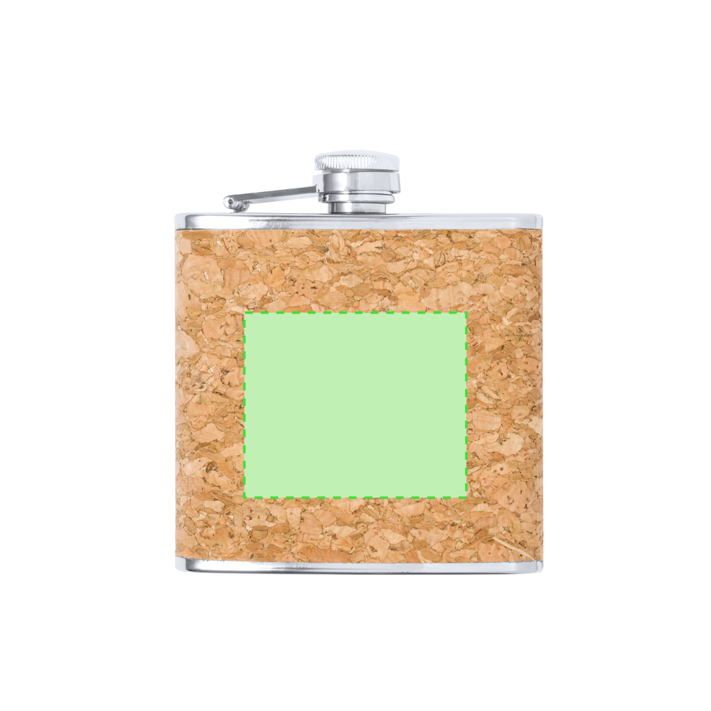 Nature line flask with a capacity of 170 ml. Natural cork exterior, with stainless steel body and screw-on safety cap. Ergonomically designed to fit comfortably in your pocket. Presented in an individual eco-design box in kraft cardboard.