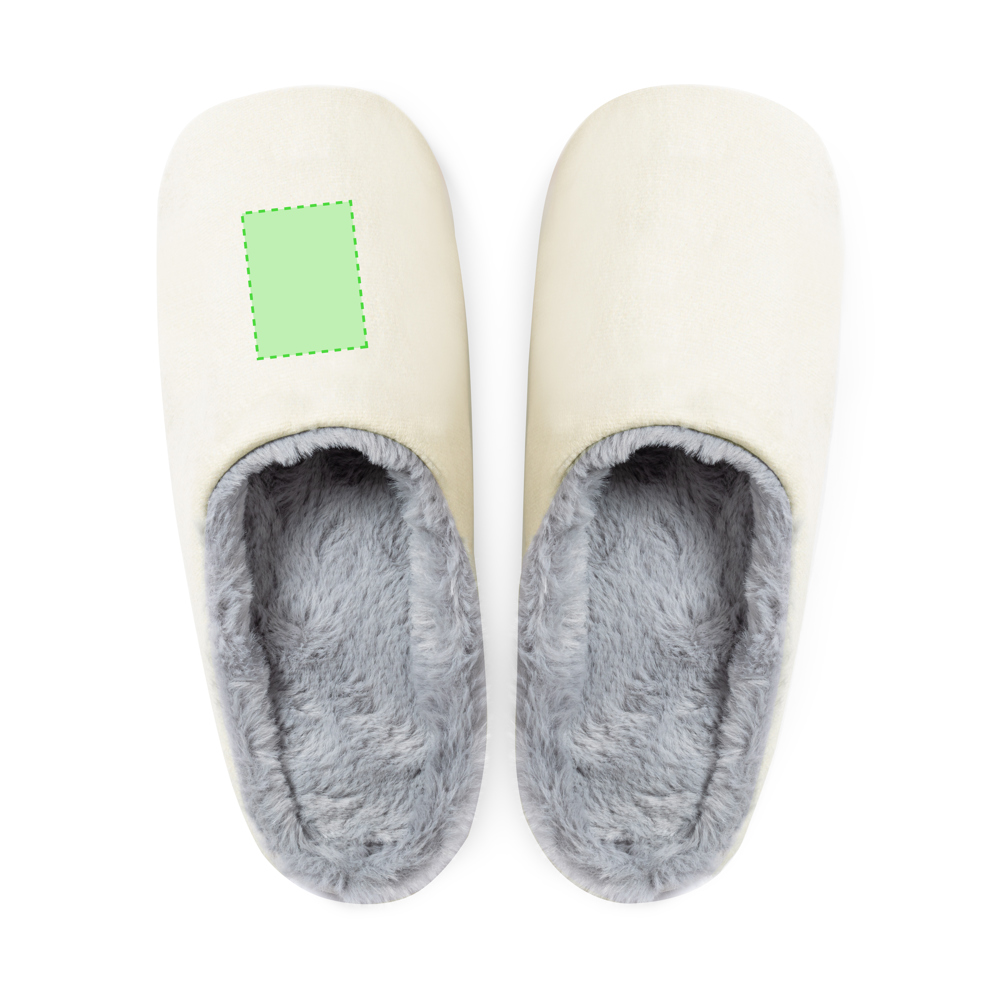 Pair of unisex slippers made in soft and comfortable cotton. Padded inside with plush lining in grey. Available in sizes 36-38 and 42-44.